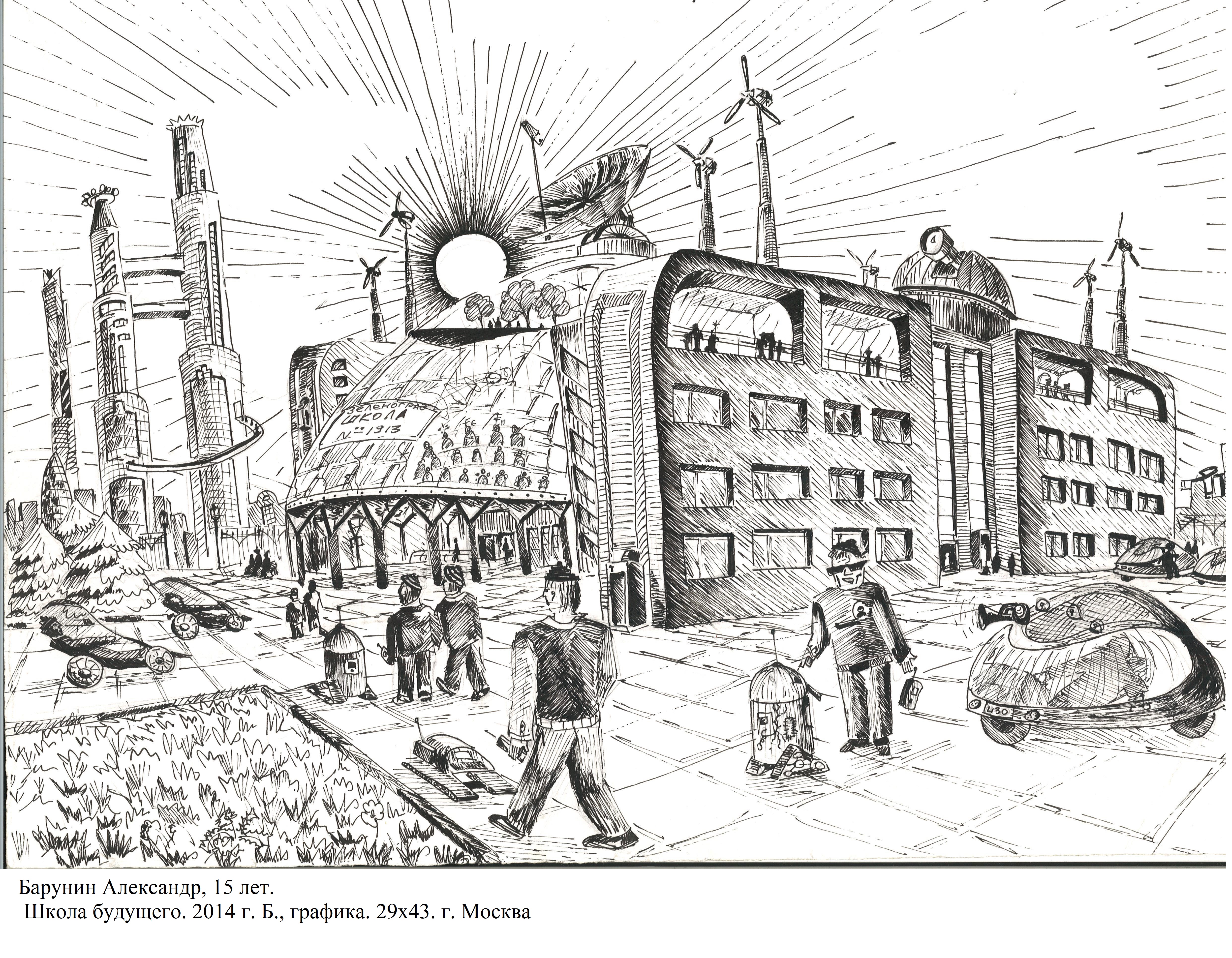Юные художники фантазируют, представляя города, в которых школа является частью космоса, а сами учащиеся – его активными исследователями.