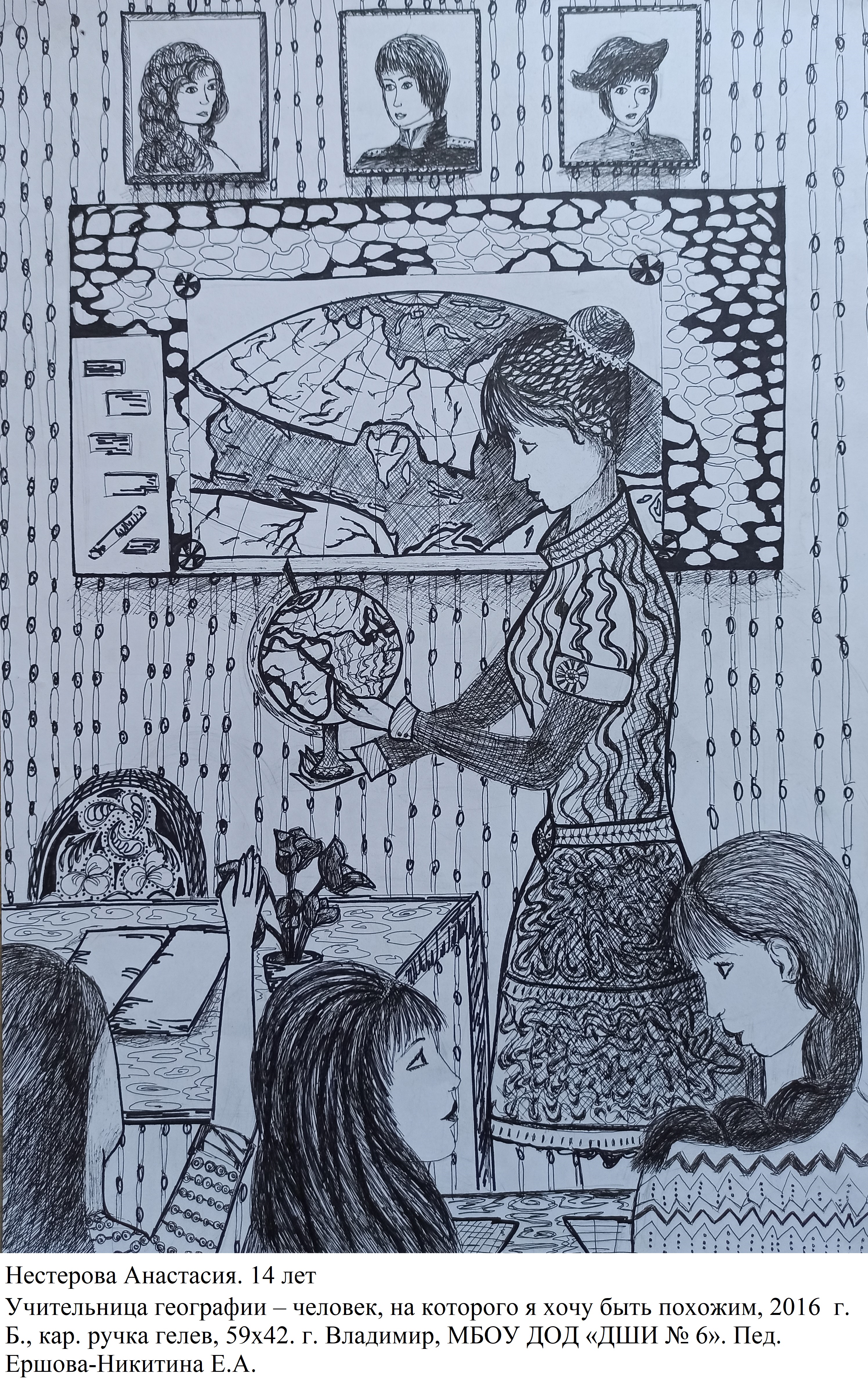 Подростки обычно сосредоточены на любимых предметах, с которыми знакомит их учитель: физика, информатика, литература и русский язык, география, история, разные области искусства. Глядя на портреты учителей, выполненные в разнообразных техниках – живописных и графических, задаешься вопросом: что определяет профессиональный выбор подростка: область знаний или учитель – высокий профессионал, блестяще владеющий своим предметом?