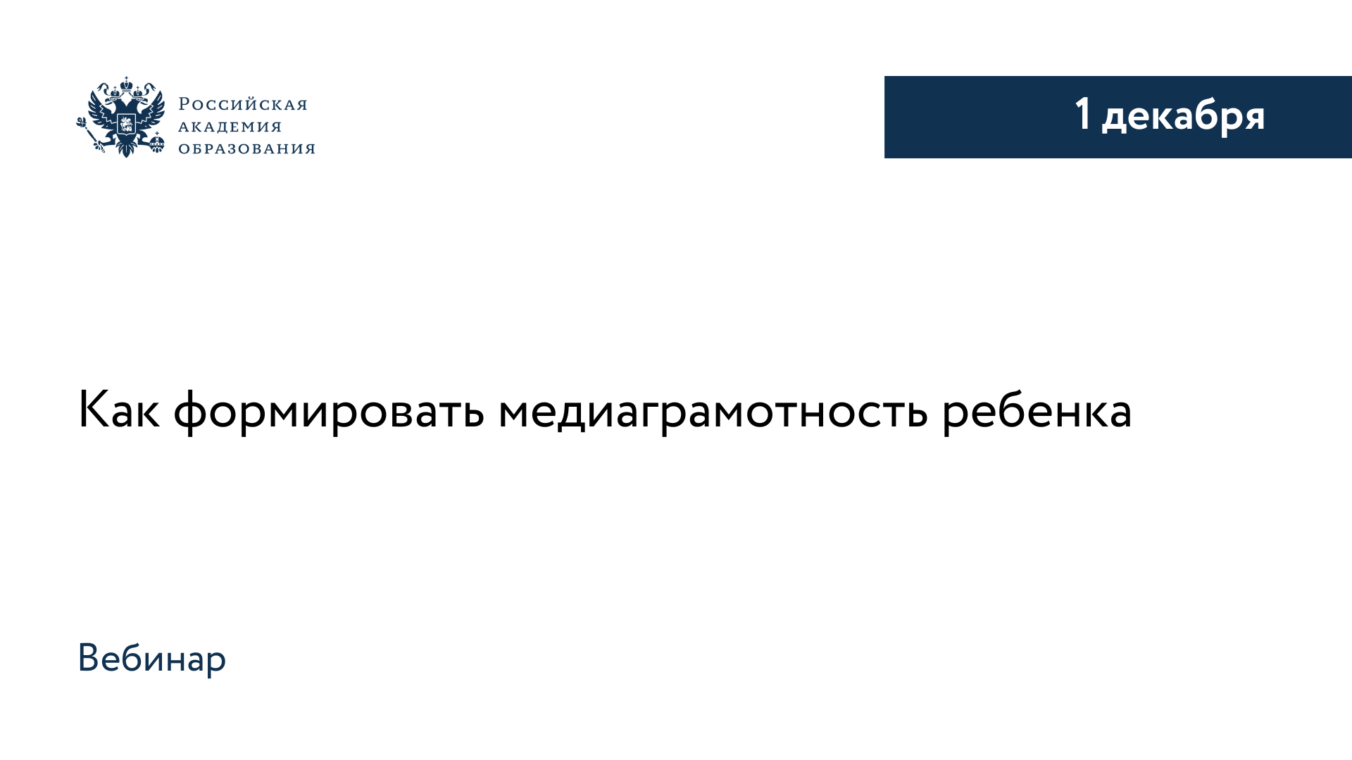 1 декабря в 16:30 в рамках проекта «Педагогическая Полянка РАО» состоится вебинар «Как формировать медиаграмотность ребенка». Мероприятие пройдет в очном и дистанционном форматах.