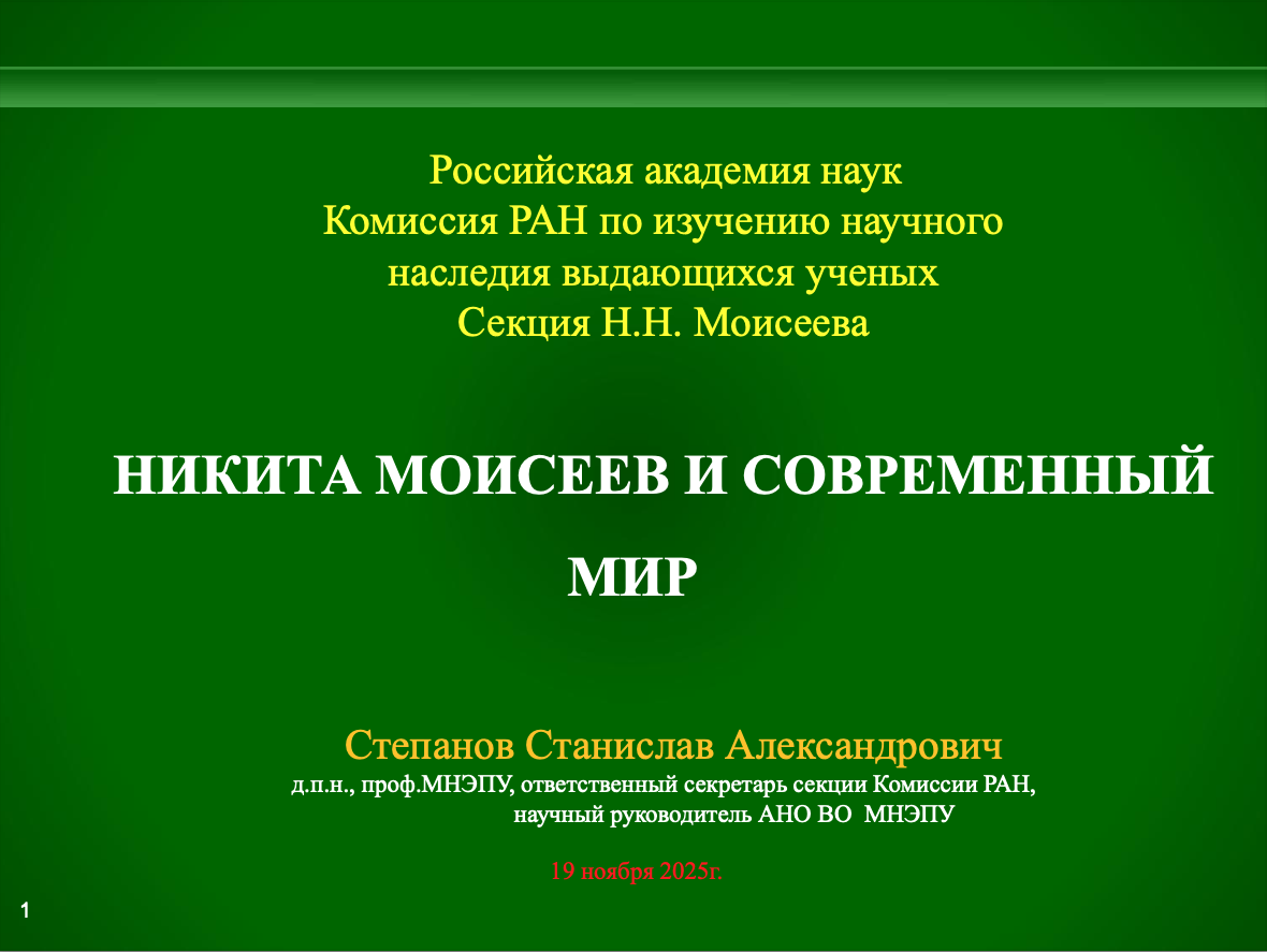 Воспоминаниями о выдающемся ученом, философе, педагоге, академике РАН Никите Николаевиче Моисееве (1917–2000), труды которого стали основой современной научной картины мира, поделился руководитель научной школы Н.Н. Моисеева Комиссии Российской академии наук по изучению научного наследия выдающихся ученых Станислав Александрович Степанов.
