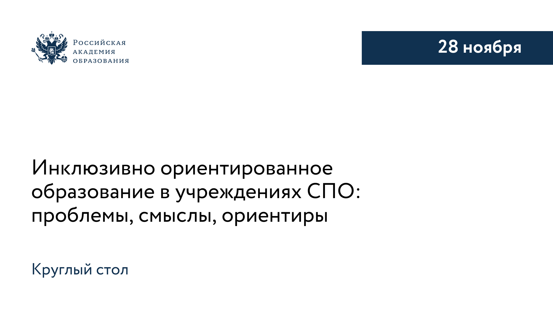 28 ноября в 14:00 в Государственном гуманитарно-технологическом университете (Московская область) состоится круглый стол «Инклюзивно ориентированное образование в учреждениях СПО: проблемы, смыслы, ориентиры», организованный Лабораторией проблем образования инвалидов и иных лиц с ограниченными возможностями здоровья РАО, Министерством образования Московской области, Государственным гуманитарно-технологическим университетом в рамках деятельности инновационной площадки РАО «Инклюзивное образование в системе высшего и среднего профессионального образования». Мероприятие пройдет в очном и дистанционном форматах.