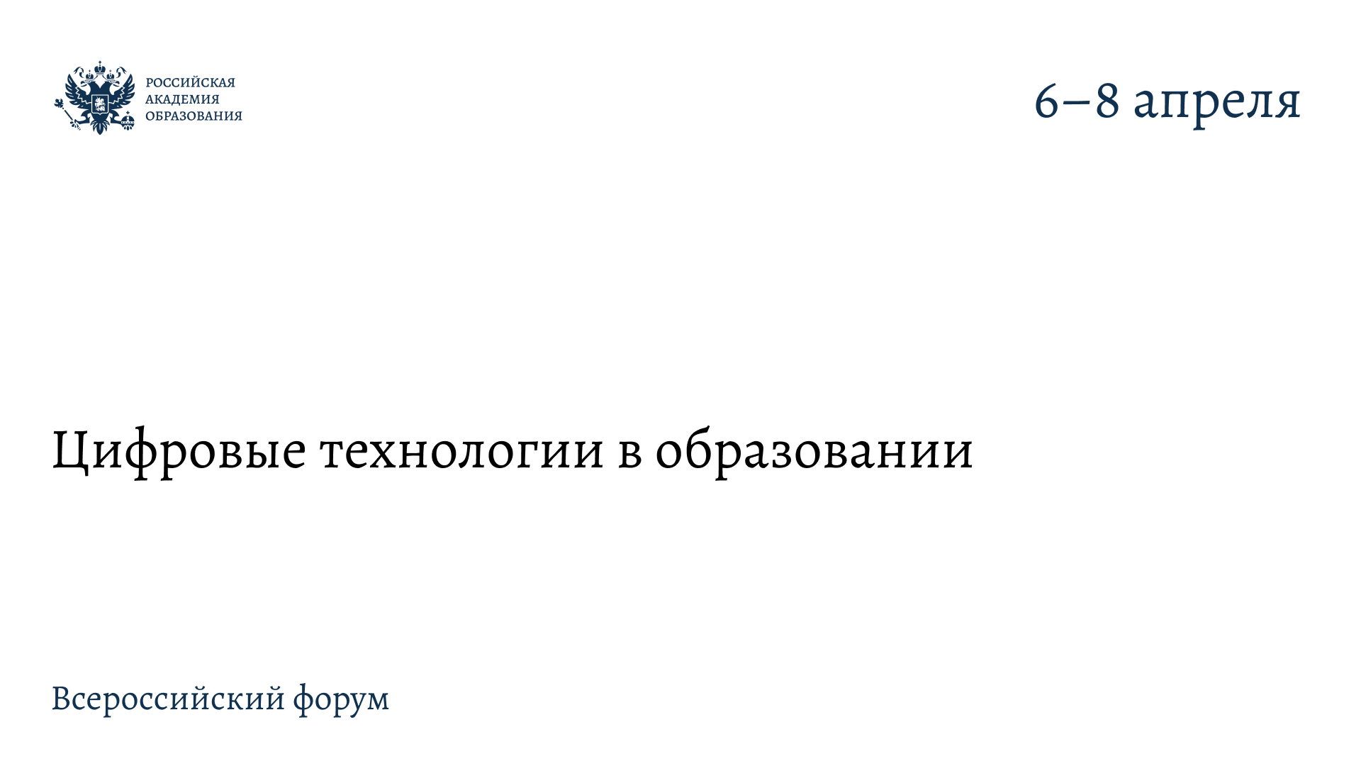 6–8 апреля состоится Всероссийский форум «Цифровые технологии в образовании», организованный Правительством Псковской области и Российской академией образования. Мероприятие пройдет в очном и дистанционном форматах.