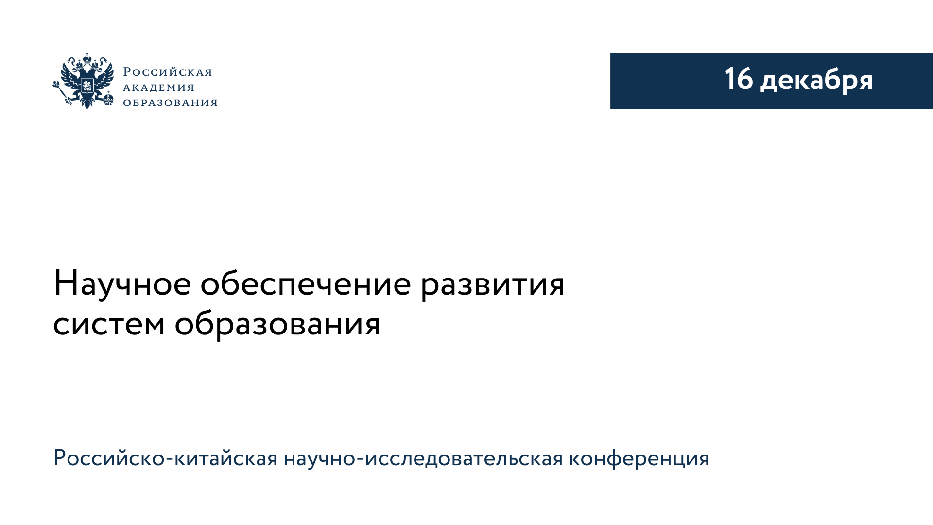 16 декабря в Российской академии образования состоится Российско-китайская научно-исследовательская конференция «Научное обеспечение развития систем образования». Организаторами мероприятия выступают Российская академия образования (РАО) и Китайская национальная академия наук об образовании (CNAES).