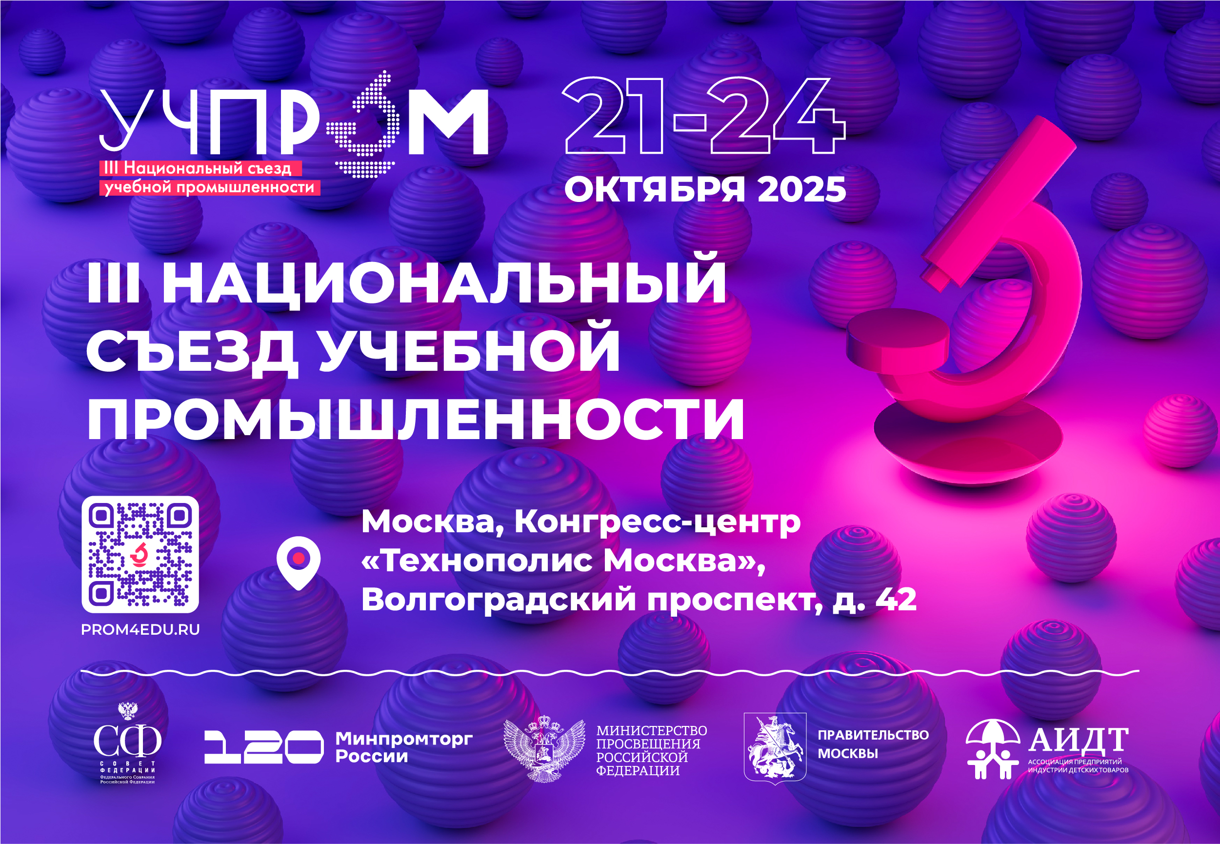 III Национальный съезд учебной промышленности – ежегодное специализированное мероприятие, в центре которого вопросы оснащения образовательных организаций и закупка учебного оборудования и средств обучения. Проводится при поддержке Совета Федерации, Государственной Думы, Минпромторга России, Минпросвещения России, Минобрнауки России, Правительства Москвы, Российской академии образования.