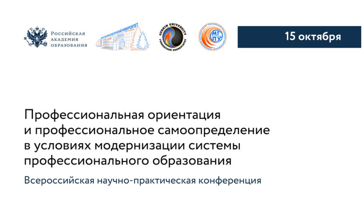 15 октября руководитель Федерального ресурсного центра психологической службы в системе высшего образования Российской академии образования, и.о. академика-секретаря Отделения общего среднего образования РАО, член-корреспондент РАО Елена Юрьевна Брель приняла участие во Всероссийской научно-практической конференции с международным участием «Профессиональная ориентация и профессиональное самоопределение в условиях модернизации системы профессионального образования».