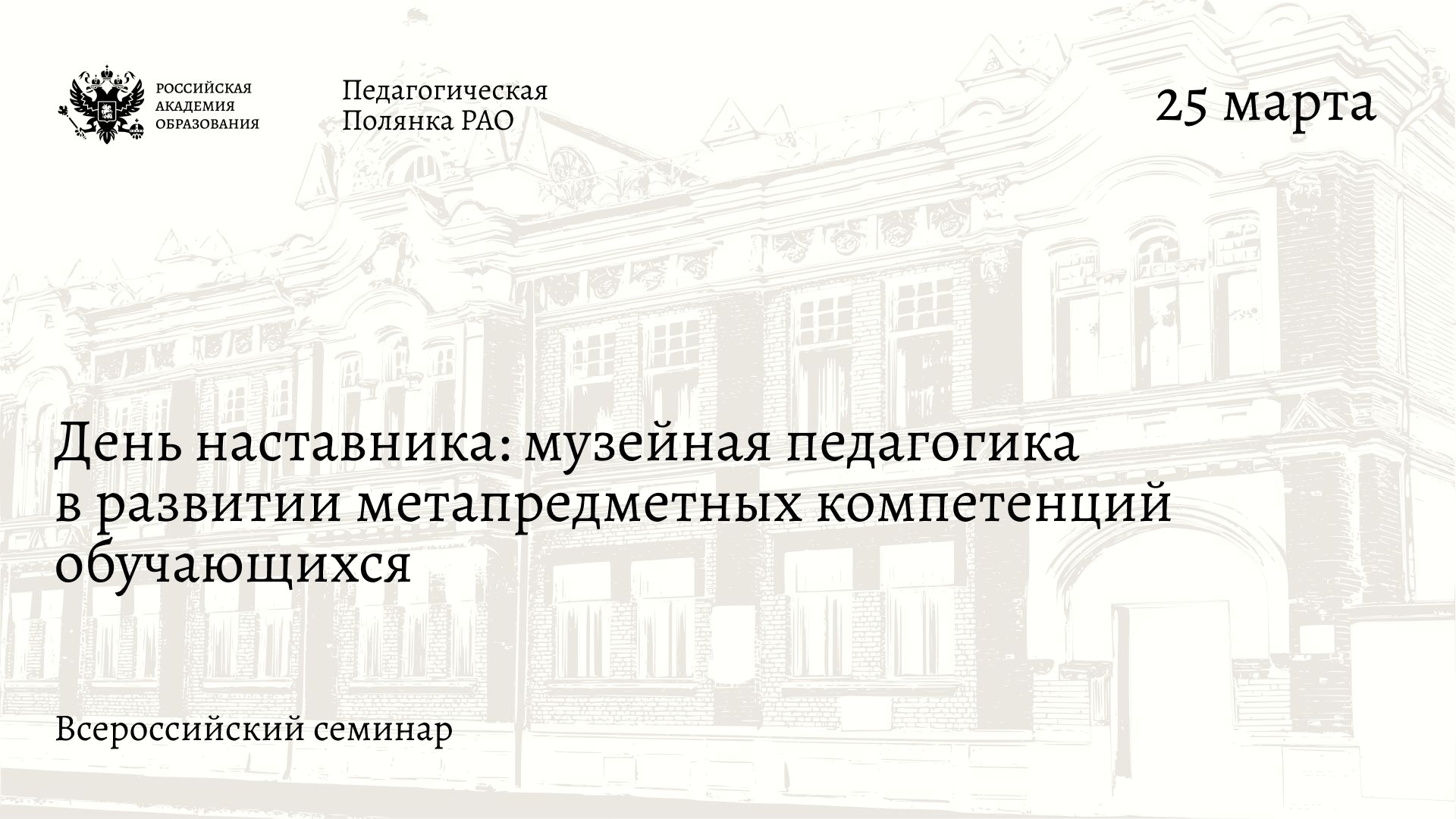25 марта в здании президиума Российской академии образования на Большой Полянке состоится Всероссийский семинар «День наставника: музейная педагогика в развитии метапредметных компетенций обучающихся».