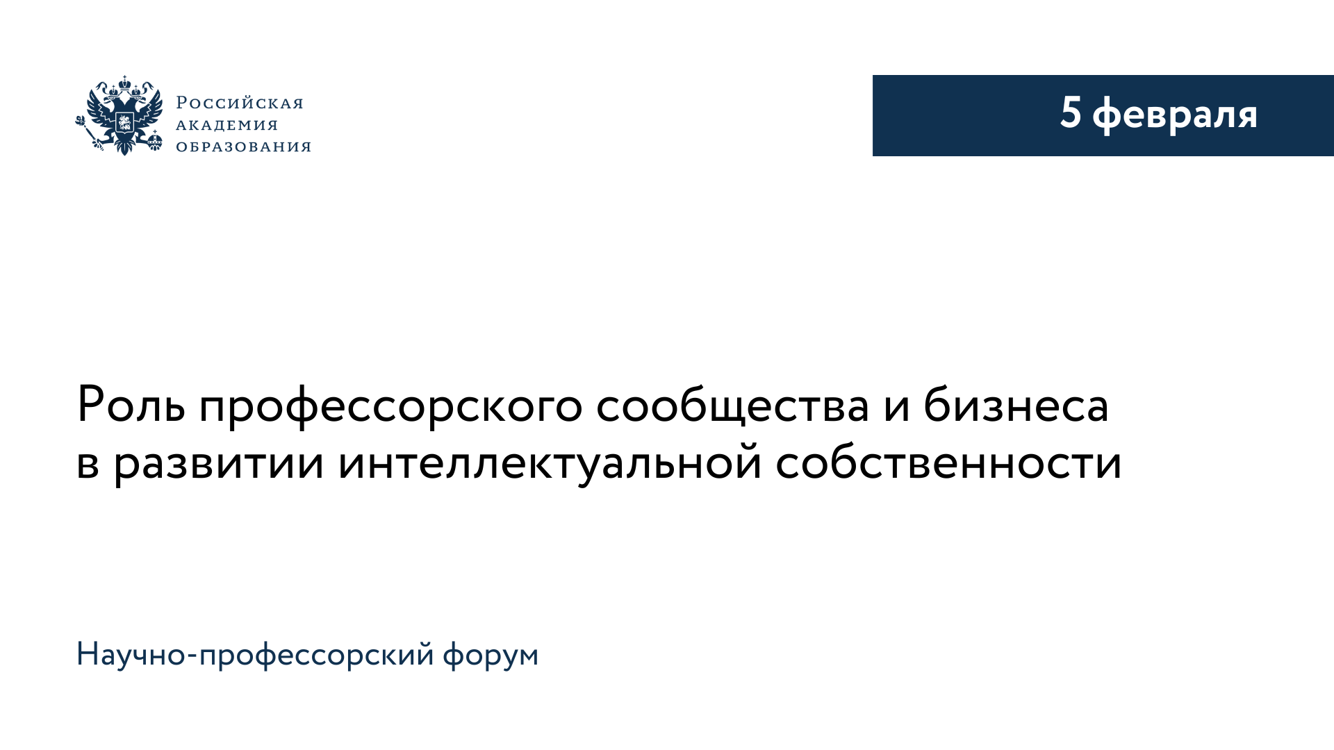 5 февраля в Российской академии образования состоится научно-профессорский форум «Роль профессорского сообщества и бизнеса в развитии интеллектуальной собственности», приуроченный к празднованию Дня российской науки.
