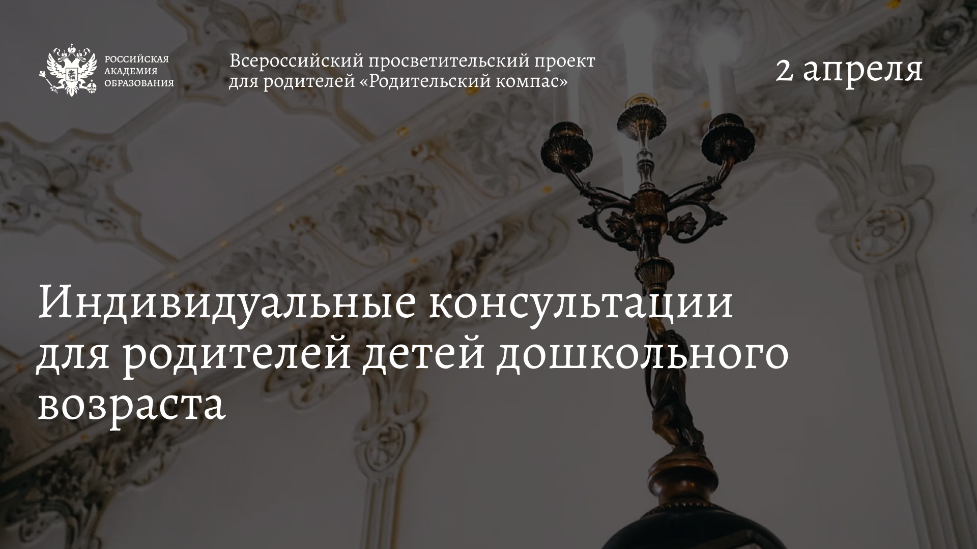 2 апреля в здании президиума Российской академии образования на Большой Полянке состоятся индивидуальные консультации для родителей детей дошкольного возраста по вопросам обучения, воспитания, развития детей, в том числе с ограниченными возможностями здоровья, трудностями социализации. Мероприятия пройдут в очном формате в рамках реализации Всероссийского просветительского проекта для родителей «Родительский компас».