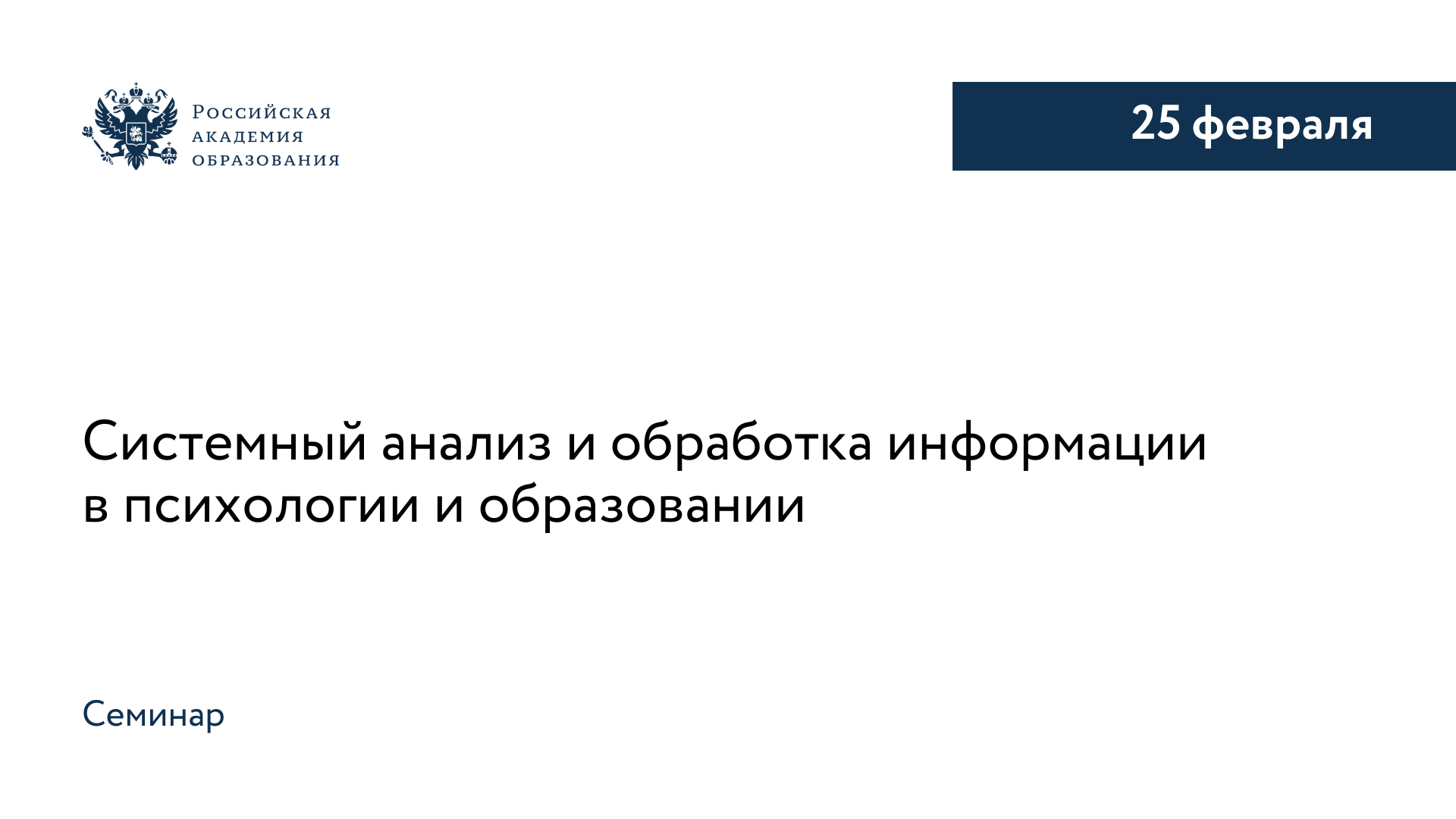 25 февраля в Российской академии образования состоится семинар «Системный анализ и обработка информации в психологии и образовании», организованный Отделением психологии и возрастной физиологии РАО. Мероприятие пройдет в очном формате.