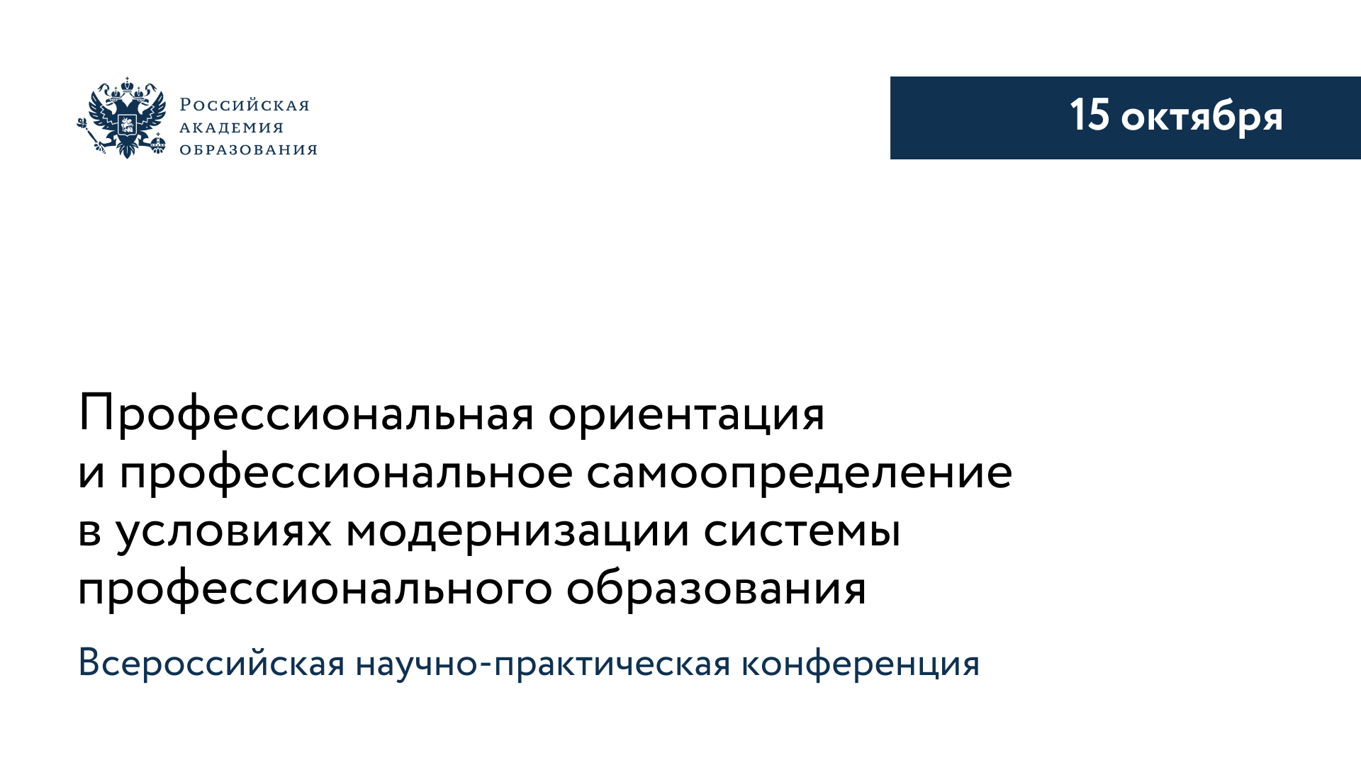 15 октября в рамках Форума «Развитие национальной системы высшего образования в России» состоится Всероссийская научно-практическая конференция «Профессиональная ориентация и профессиональное самоопределение в условиях модернизации системы профессионального образования». Мероприятие пройдет в очном и дистанционном форматах.