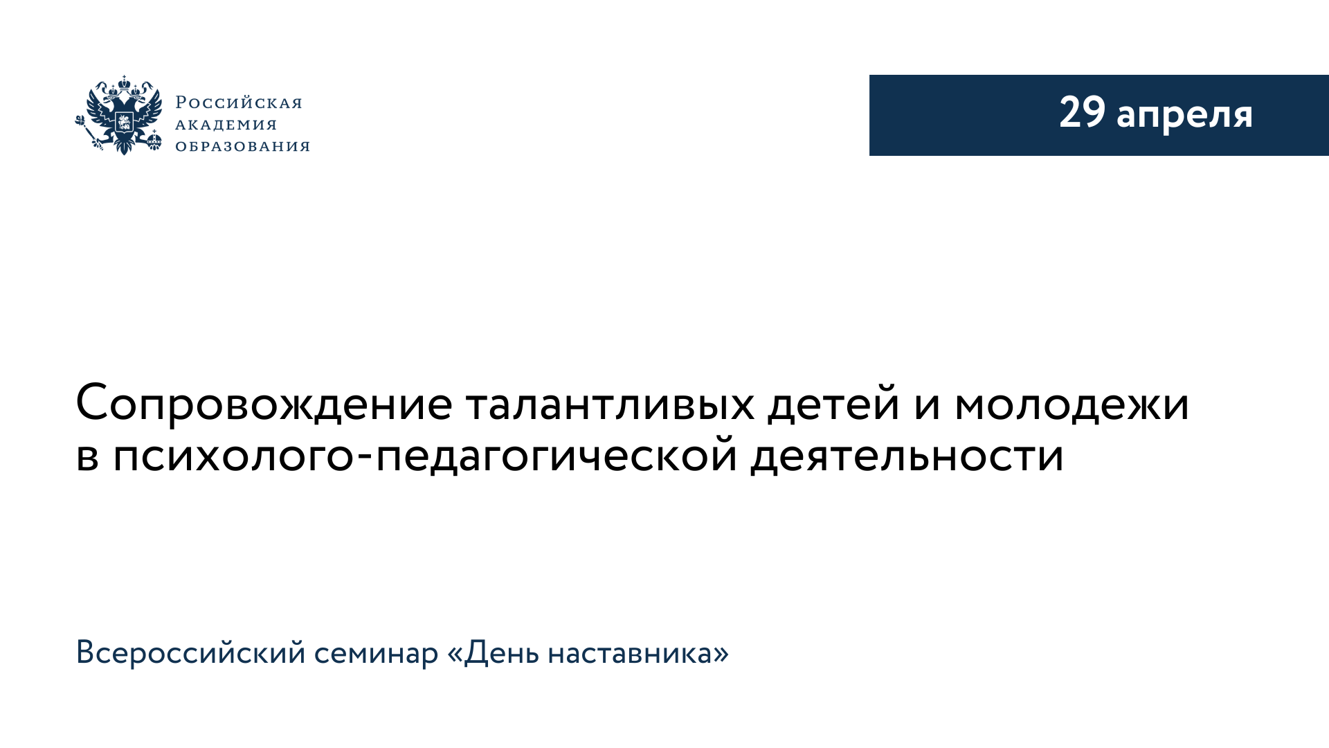 29 апреля в здании президиума Российской академии образования на Большой Полянке состоится Всероссийский семинар «День наставника. Сопровождение талантливых детей и молодежи в психолого-педагогической деятельности». Мероприятие пройдет в очном и онлайн форматах в рамках реализации проекта «Педагогическая Полянка РАО».