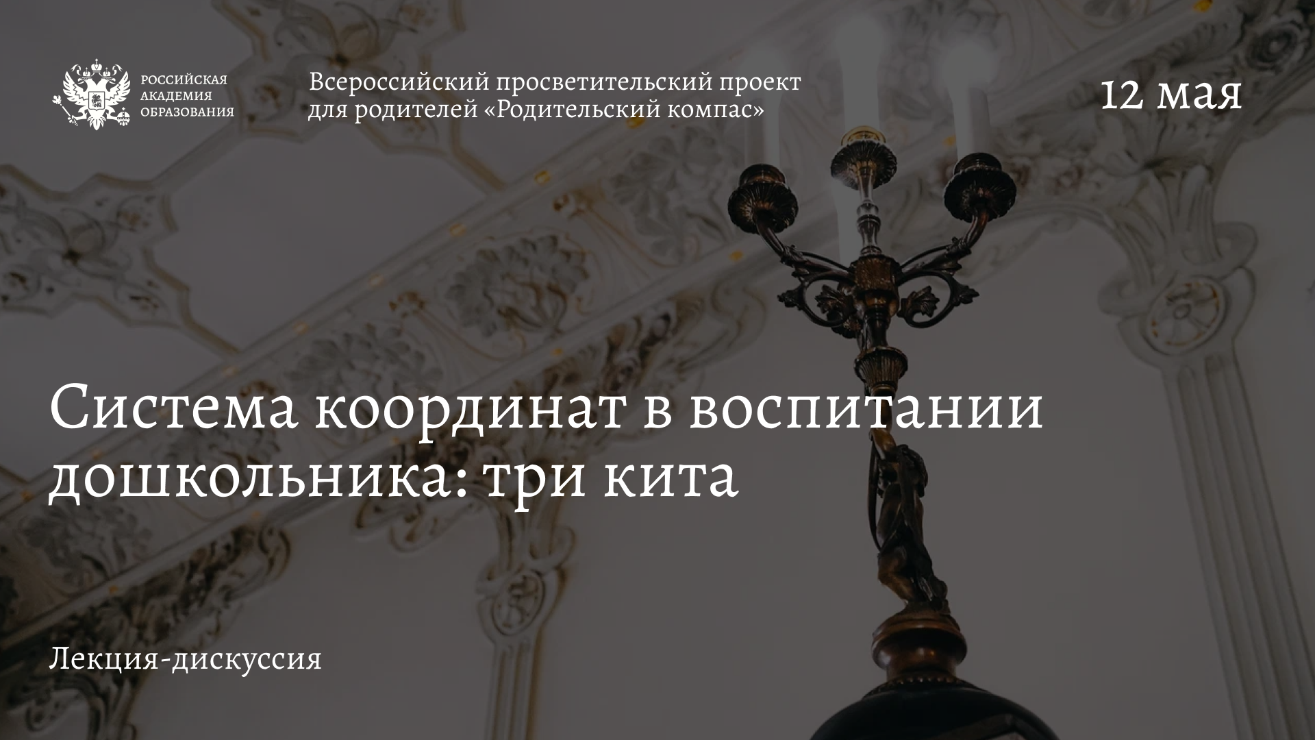 12 мая в здании президиума Российской академии образования на Большой Полянке состоится пятая встреча из цикла тематических лекций-дискуссий для родителей, воспитателей и всех заинтересованных «Система координат в воспитании дошкольника: три кита». Мероприятие пройдет в очном и дистанционном форматах в рамках реализации Всероссийского просветительского проекта для родителей «Родительский компас».