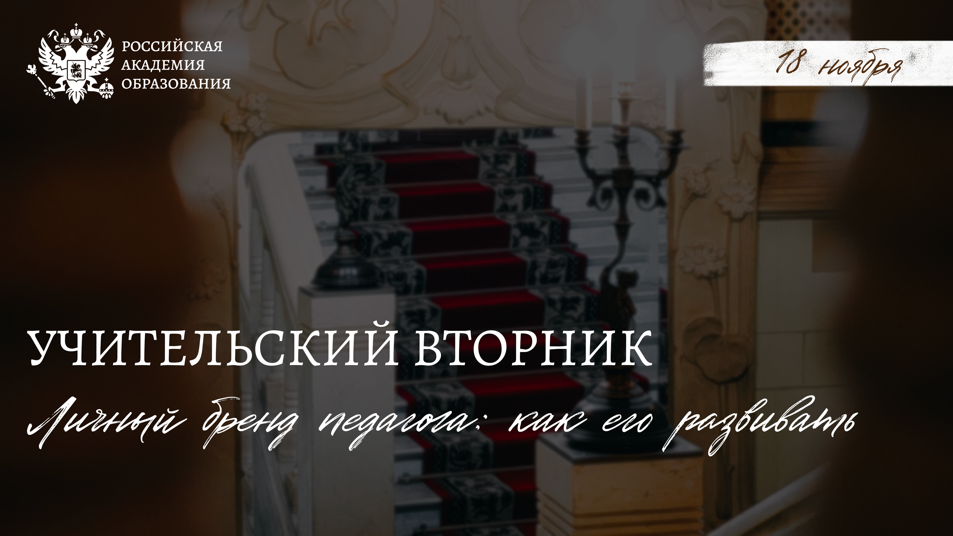 18 ноября в здании президиума Российской академии образования на Большой Полянке состоится тематический вечер «Учительский вторник», посвященный развитию личного бренда педагога. Мероприятие станет вторым в цикле встреч для молодых специалистов в сфере образования, студентов педагогических вузов и колледжей.