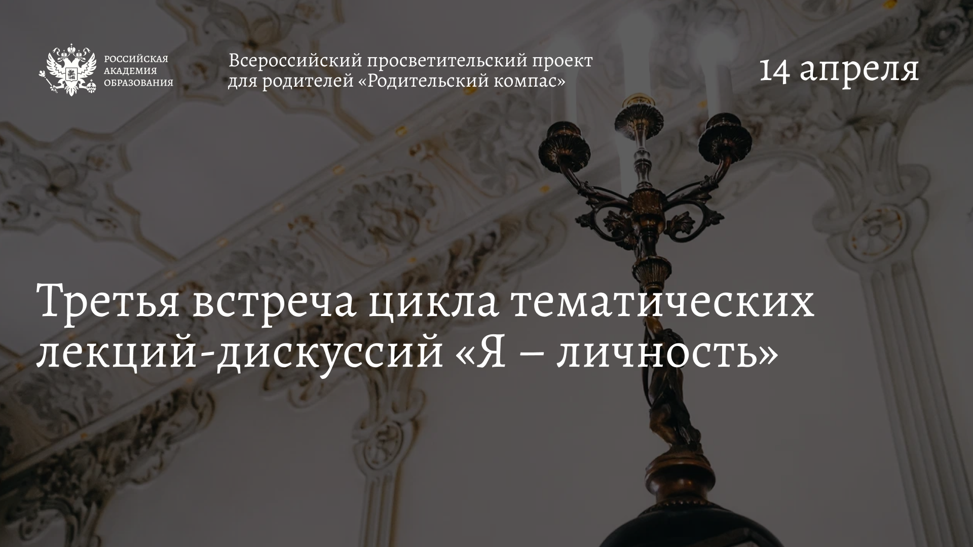 14 апреля в здании президиума Российской академии образования на Большой Полянке состоится третья встреча из цикла тематических лекций-дискуссий «Я – личность».Мероприятие пройдет в очном и дистанционном форматах в рамках реализации Всероссийского просветительского проекта для родителей «Родительский компас».