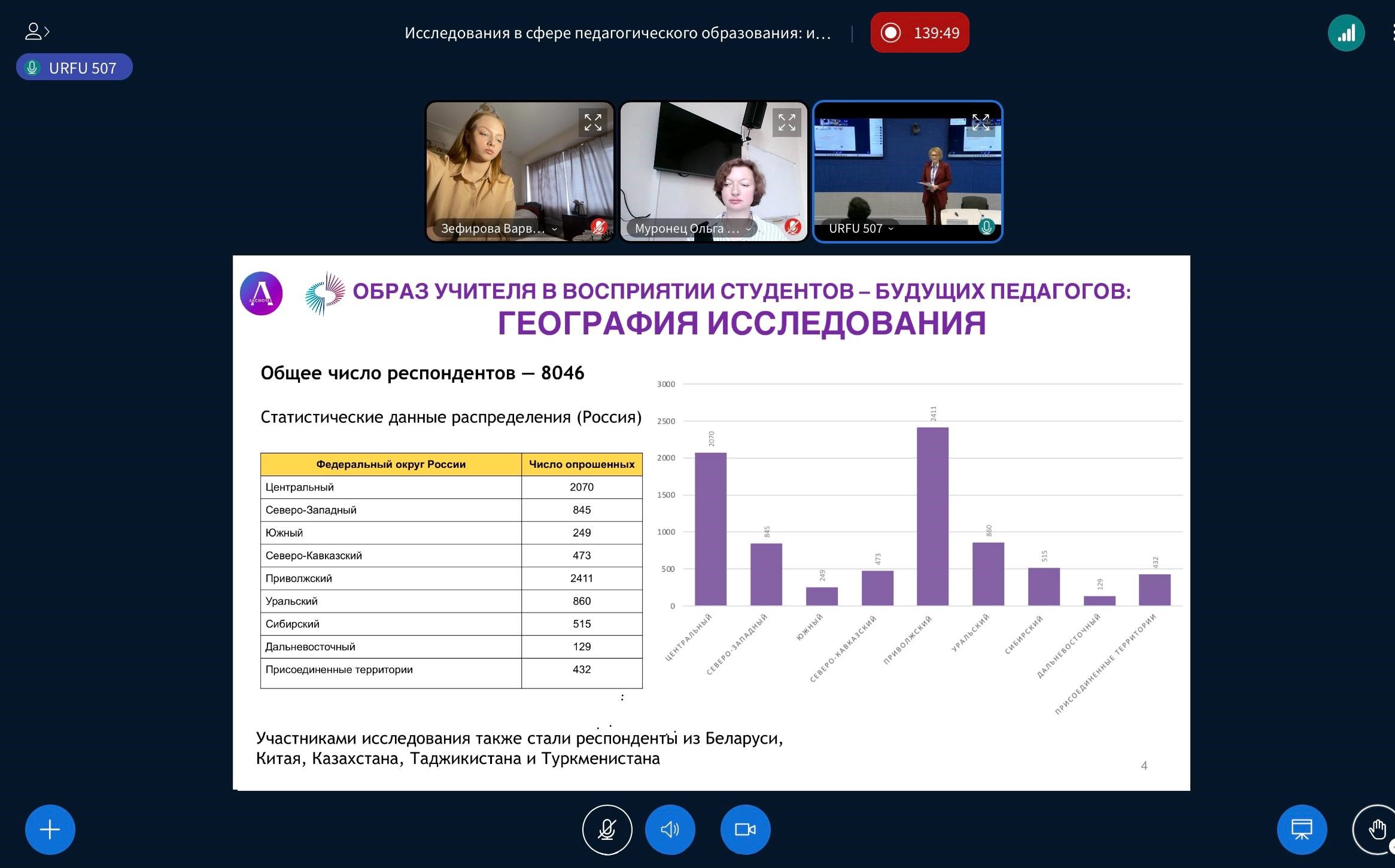 В ходе выступления Ольга Владимировна подчеркнула, что «студенты, которые скоро станут педагогами, мотивированы к работе с детьми, стремятся к самореализации через учительство. Но в то же время ребята опасаются сложностей в работе с родителями и избытка отчетности. Профессиональные премии видятся студентам наиболее значимым способом повышения престижа педагогической профессии, как и ведение авторских педагогических блогов в соцсетях». Обработка данных исследования продолжается.
