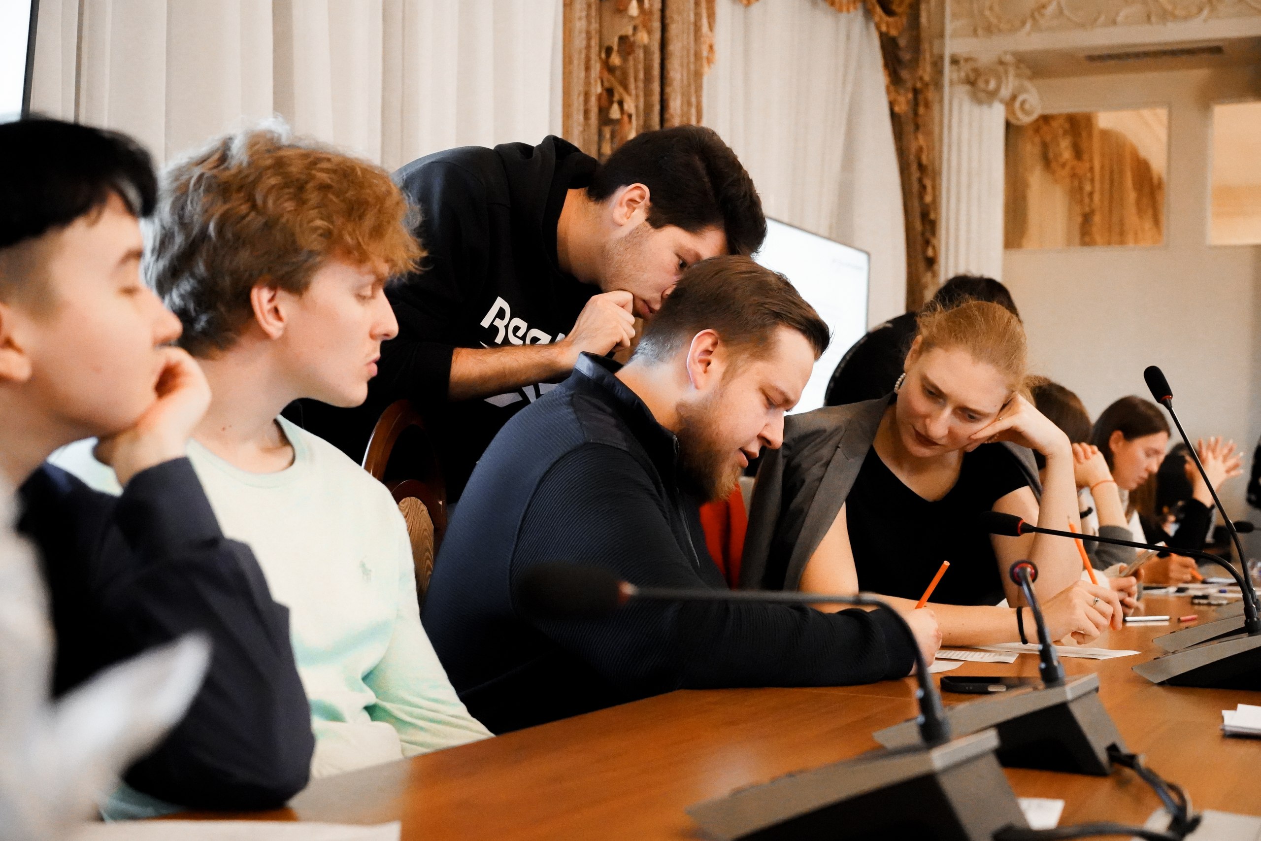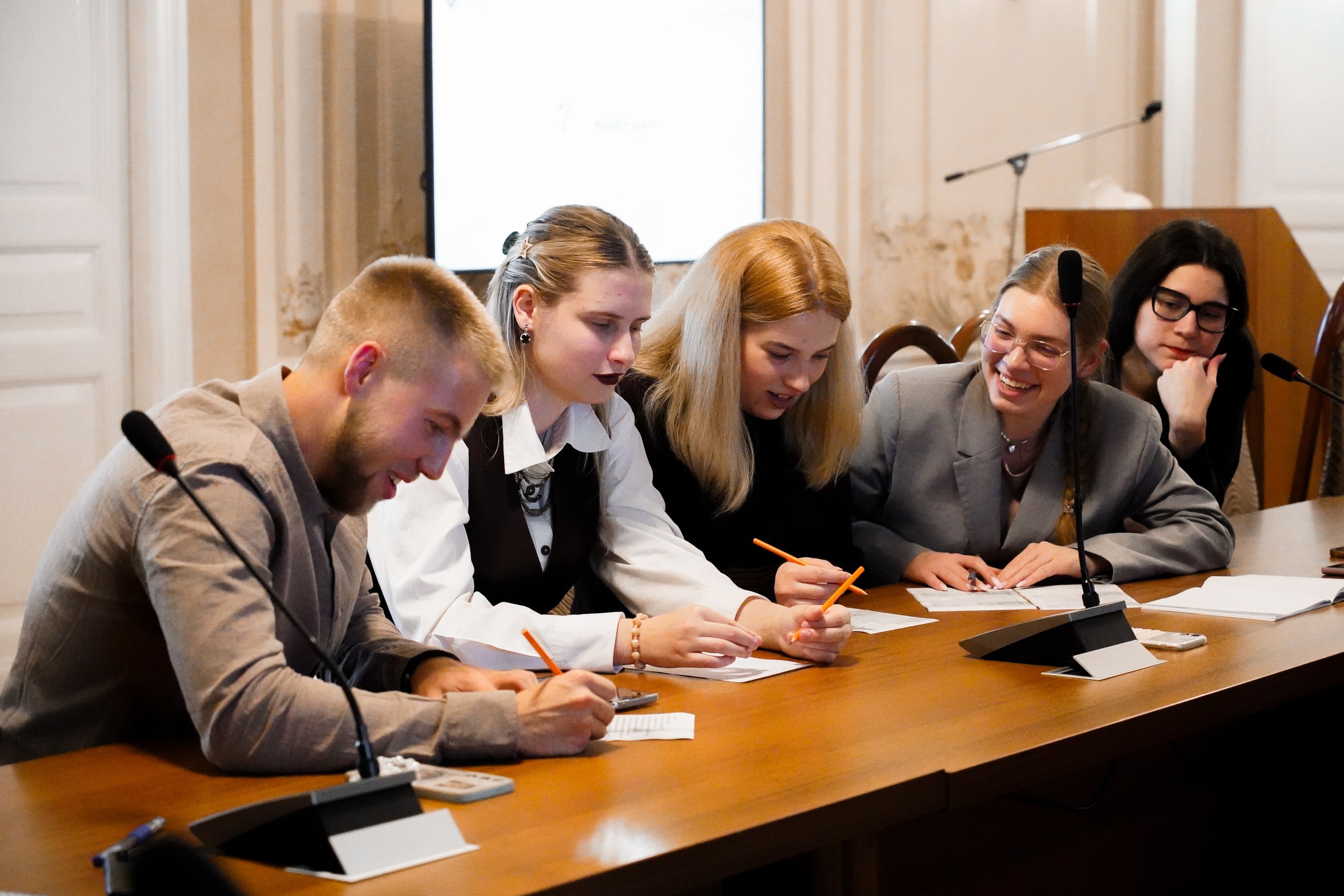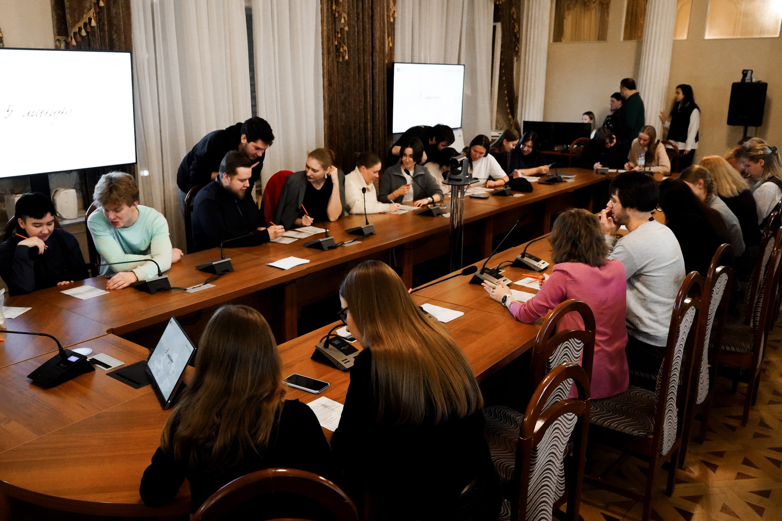 Специалисты Управления международного сотрудничества, связей с общественностью и СМИ Российской академии образования Татьяна Босова, Дарья Новикова, Виктория Устюжанина и Полина Виноградова представили эффективные игровые практики для организации коммуникации в коллективе. Гости вечера познакомились друг с другом в процессе прохождения творческих состязаний в парах и группах.