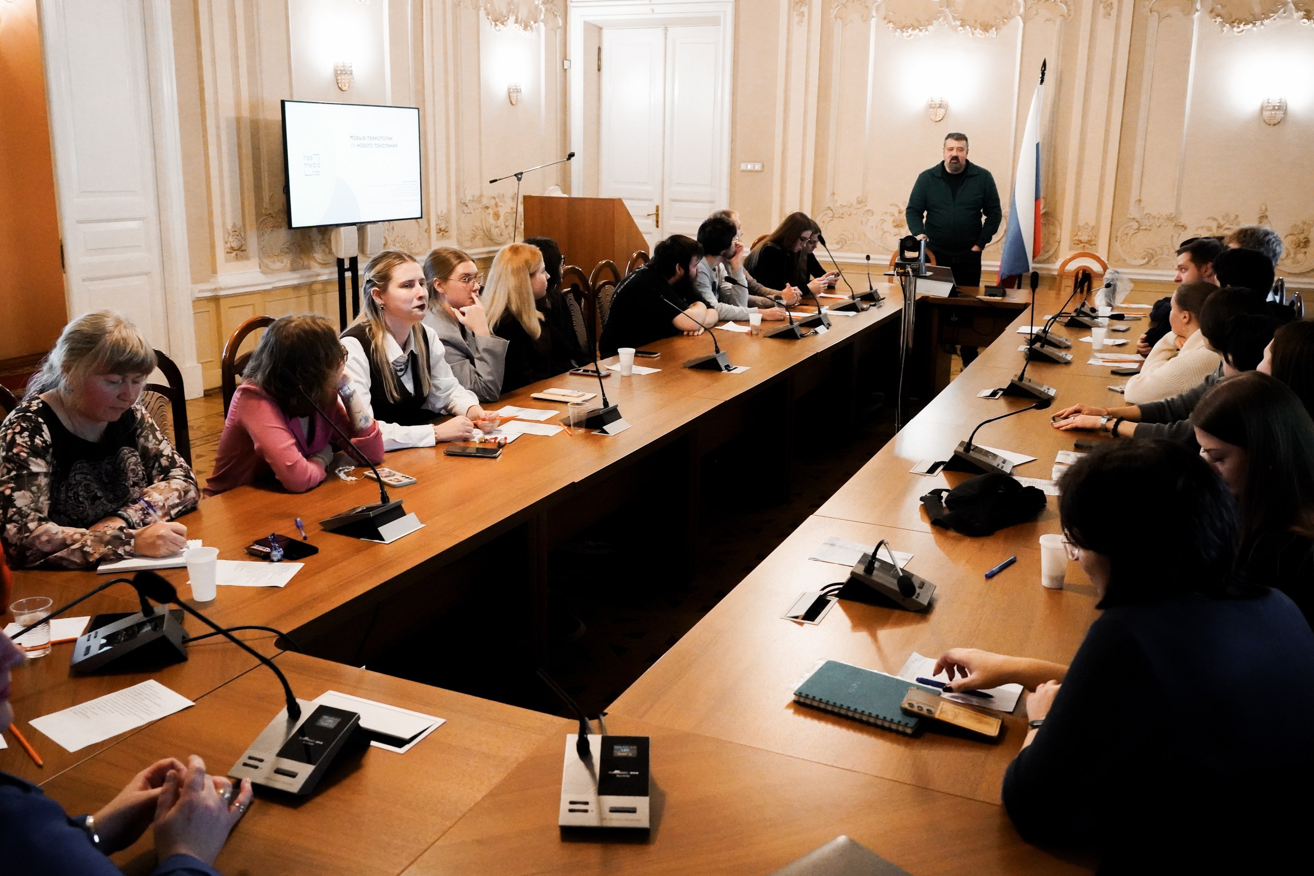 Советник президента Российской академии образования, заведующий проектно-учебной лаборатории медиакоммуникаций в образовании НИУ «Высшая школа экономики» Александр Борисович Милкус выступил с лекцией «Новые технологии нового поколения», в ходе которой рассказал об истории развития коммуникационных технологий, средствах эмоционального воздействия и когнитивных искажениях в медиапространстве.