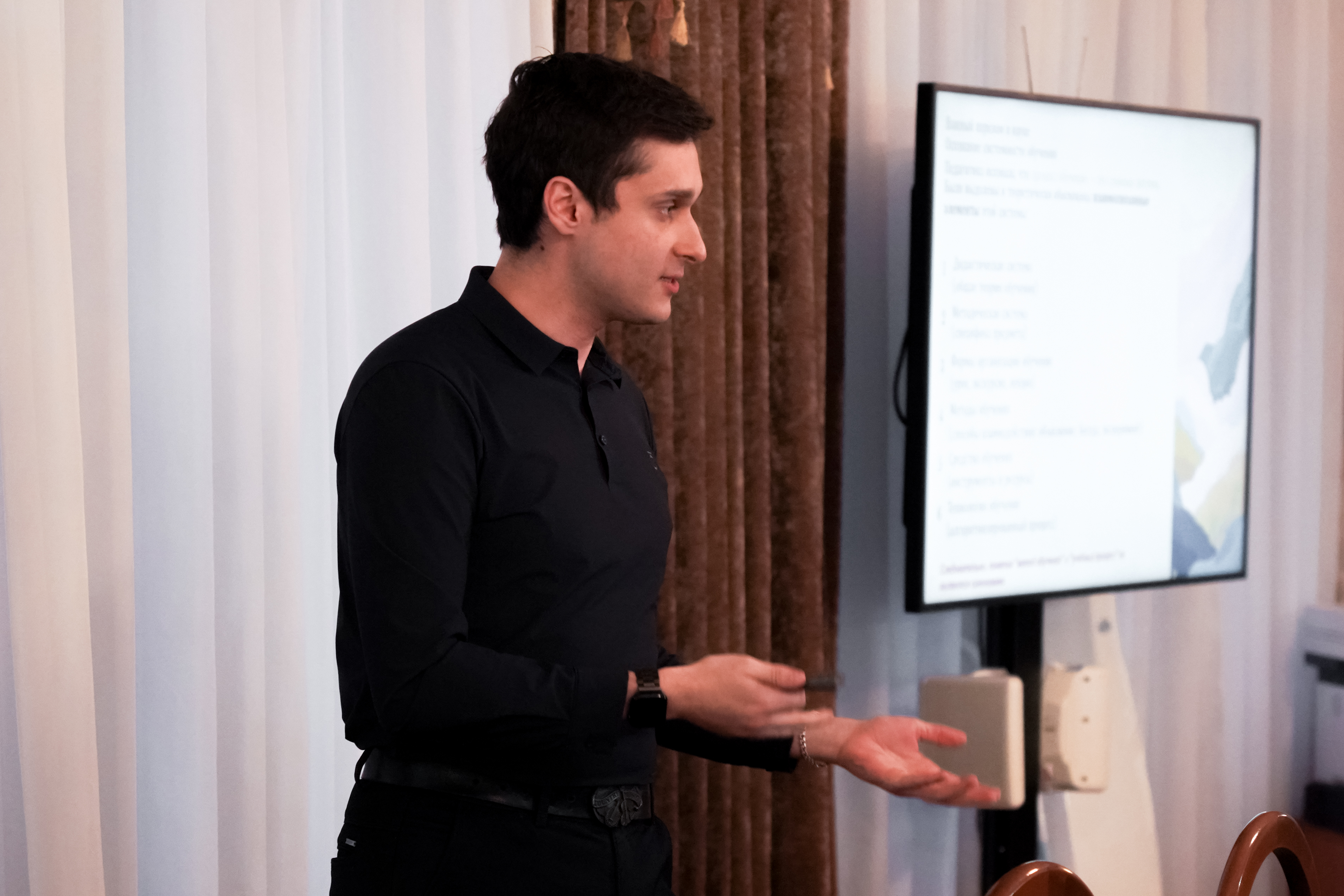 Мастер-класс «Проектный подход в образовании: от диагностики экологического следа к конструированию учебной ситуации» для участников предновогоднего «Учительского вторника» провел методист, член жюри регионального этапа Всероссийской олимпиады школьников по экологии 2022–2024 гг., аспирант 2-го курса Государственного университета просвещения Джасем Усамович Ехссан. Он представил проектный подход как комплексную модель взаимодействия учителя и ученика, предусматривающую целостную перестройку учебной ситуации, а также провел тестирование по диагностике экологического следа.