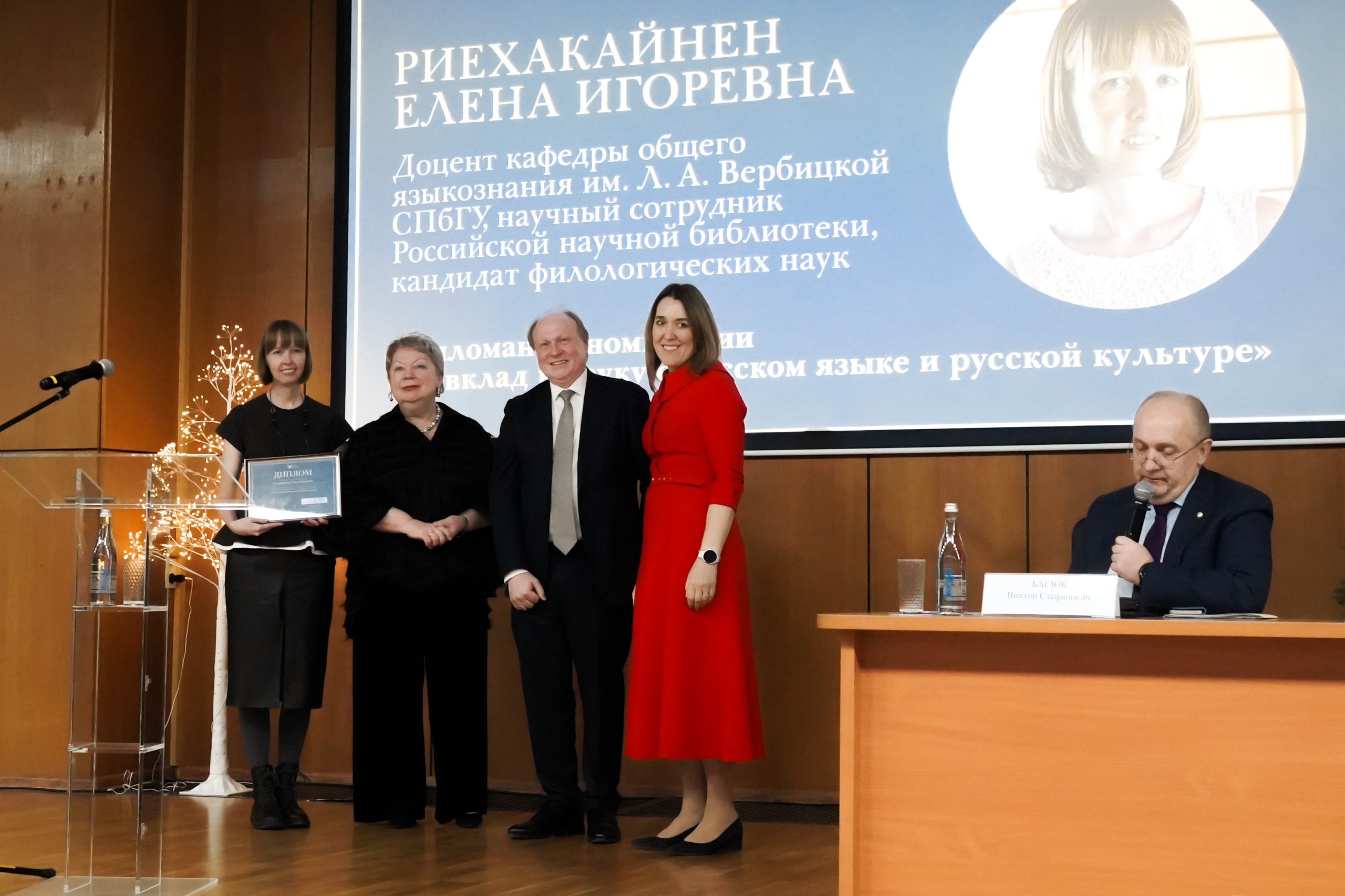 Дипломанты: Елена Игоревна Риехакайнен, доцент кафедры общего языкознания им. Л. А. Вербицкой Санкт-Петербургского государственного университета, научный сотрудник Российской национальной библиотеки; Валерий Владимирович Прозоров, заведующий кафедрой общего литературоведения и журналистики Института филологии и журналистики Саратовского государственного университета имени Н.Г. Чернышевского