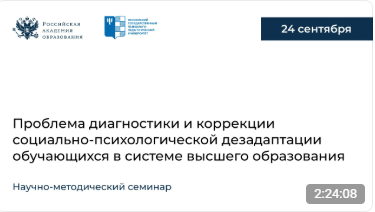 Научно-методический семинар «Проблема диагностики и коррекции социально-психологической дезадаптации обучающихся в системе высшего образования»